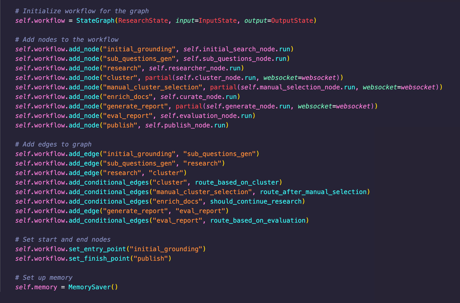 The Company Researcher uses a dynamic, graph-based structure that balances clear paths with flexibility. Traditional deterministic workflows work well for set steps but struggle in unpredictable real-world contexts. Fully dynamic workflows, like ReAct, handle unpredictability better but can lack structure and deterministic accuracy. The Company Researcher’s hybrid approach, implemented with LangGraph, maintains a clear path while adapting to real-world, real-time challenges, allowing for flexibility when data inputs vary.